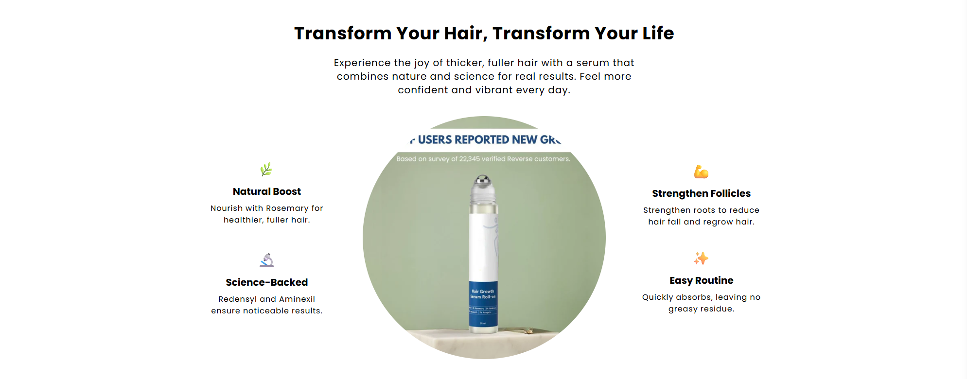 Even if you've lost visible density, our serum can reactivate dormant follicles, encouraging new growth where you need it most.